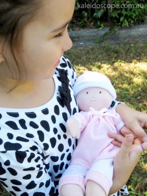 How sweet is this baby doll in pink! She makes a wonderful companion to a young child. Made from quality soft fabric, you can not help but cuddle this baby. Features include: A removable outfit for easy cleaning. The hat is attached. She is 32cms tall Materials: 100% cotton body and clothing Stuffing: 100% Recycled PET bottles fibre Manufactured with socially responsible practices. Washing Instructions: Handwash only, do not bleach, do not tumble dry, do not iron and do not dry clean. Please note: Carry cot sold separately Suitable for ages: Newborn and up
