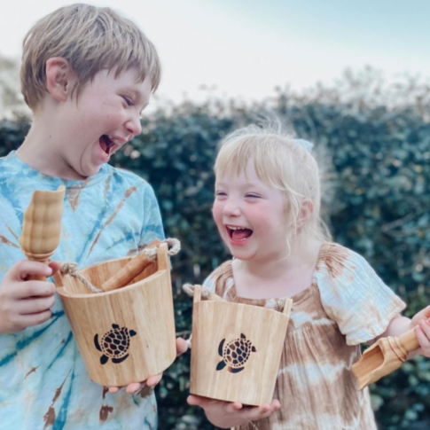 This beautiful Wooden Bucket & Scoop set with the subtle burn stamps of sea creatures aims to raise awareness of using sustainable materials that are environmentally friendly rather than contributing to plastic pollution that ends up in our ocean. If you are interested in converting your children’s sandpit or sensory play area from plastic to a more tactile natural play space then this Wooden Bucket & Scoop set is what you’ve been looking for! The beautiful wooden bucket is made for durability and outdoors at the beach or sand-pit, for carrying water, sand or little treasures. The rope and wooden handle is perfect for carrying the bucket making it easy for gripping for little hands. The rippled wooden handle on the scoop also fits snuggly into the palms of hands while scooping sand. PLEASE NOTE: Each Burn Stamp is done by hand and therefore has different shades of imprints (some dark and some very light imprints) which in our opinion is all part of the beauty of hand-crafted unique items. Wooden Bucket size: Diameter 15.5cm x Height 16.5 cmWooden Scoop size: W 4.6cm x L 15.9cmWeight: 550grams Suitable for ages 3+The story behind the turtle and whale wooden burn stamps. We’ve all strolled on the beach and seen the destruction of plastic pollution, whether it was a washed up plastic toy set or plastic remains of something, eventually ending up as micro-plastic washed up on our sandy beaches or even worse, ingested by some poor innocent sea creature.Through our own research we found out that Turtles, Whales, Seals, Fish and Seabirds are the top five animals impacted by plastic ocean pollution. We did a sea creature survey to find out peoples favourite sea creatures. The most popular sea creatures voted were the whale and the sea turtle! Hence why we chose these our first editions. Customers can either purchase the ‘whale edition’ or ‘turtle edition’ Wooden Bucket & Scoop set or both. Maybe we will do a release of all 5 sea creatures in the future! Designed by an Australian Early Childhood Teacher and crafted in Vietnam Images from @sweetlittle.blessings and @explorenook